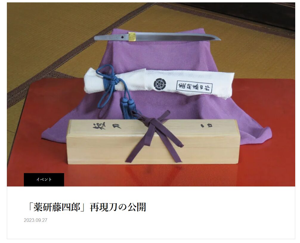 本能寺の変で焼失したとされていますが、2018年に現代の刀匠の手によって「再現刀」が作られ、建勲神社へ奉納されました。