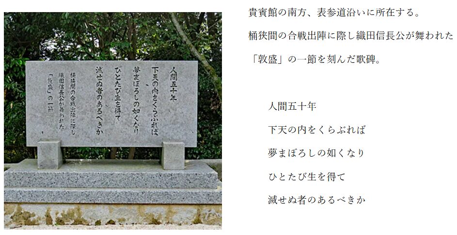 境内には信長公が愛した能『敦盛』の一節(人間五十年…)を刻んだ歌碑があります。