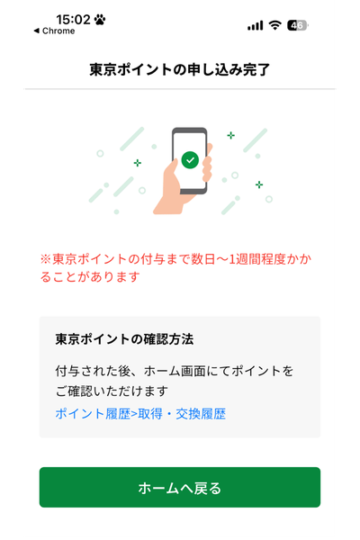 手続き開始からポイント交換まで、かかった時間は15分程度でした。