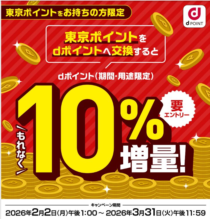 - dポイント増量キャンペーン:2026年3月31日23:59まで