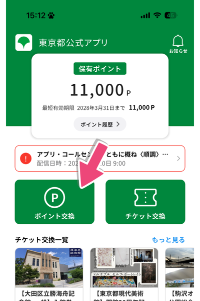 - 詳細は東京アプリの「ポイント交換」画面で確認できます
