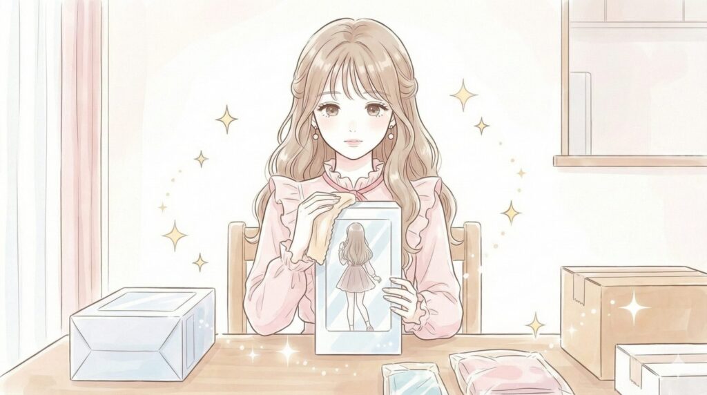 梱包する前にティッシュなどで軽く拭いておくだけでも、「大切に扱われていたんだな」と伝わり、状態が良いと判断されやすくなります。